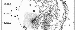 Fig. 3: H.E.S.S. significance contours overplotted on a map of HI density at the approximate distance of Westerlund 1 (HI data from McClure-Griffiths et al, 2005). Preliminary H.E.S.S. data.