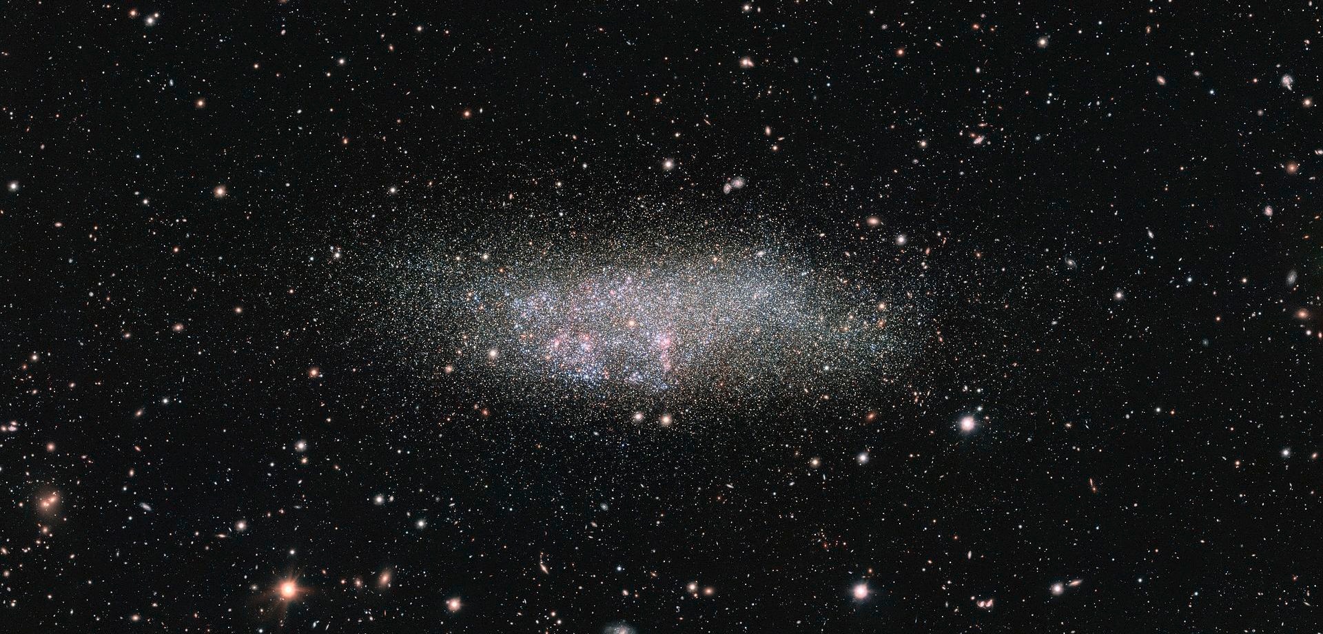 WLM is classified as a so-called ‘dwarf irregular galaxy’. It was discovered by Max Wolf in 1909 using the telescopes of his observatory on the Königstuhl in Heidelberg [4] and identified as a dwarf galaxy by Knut Lundmark and Philibert Jacques Melotte seven years later. This dwarf galaxy is of oblate spheroidal shape [5], viewed under a high inclination of about 74 degrees [6]. It is located in the outer parts of the Local Group at a distance of 990 kpc (3.2 millions light years) and has an optical size of about 2.5 kpc (~8,100 light years) at its greatest extent.
