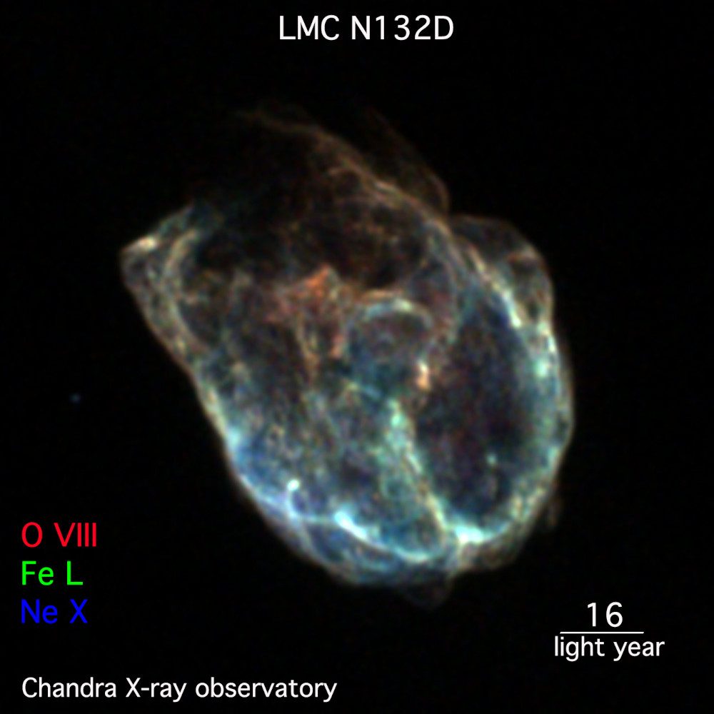 On the one hand, the high gamma-ray luminosity may not be surprising, as N132D is also a bright supernova remnant in radio emission and X-rays. Moreover, N132D is a shell evolving in gas that is more than ten times denser than that surrounding other remnants. This helps the production of gamma-ray emission, as it arises when cosmic-ray particles collide with gas particles producing unstable particles called pions. These pions can only exist for a very short time until they fall apart and produce gamma rays. So, dense gas helps to make cosmic rays visible in gamma-ray light.