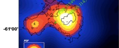 Among the population of Galactic very high energy gammma ray sources, pulsar wind nebula appear to be the dominant source class, see e.g. Kargaltsev and Pavlov (2010) for a compilation. With the discovery of new pulsars e.g. by Fermi (Abdo et al. 2009), more previously unidentified very high energy sources are identified as electron-positron nebulae driven by pulsars. One example of a recent discovery is the very high energy gamma ray source HESS J1458-608 (top image). A first marginal detection was achieved in the H.E.S.S. Galactic Plane Survey carried out since 2004. Dedicated follow-up observations in 2009 and 2010 clearly established extended emission, at a significance of about 8 standard deviations. The (Gaussian) width of the emission region is about 0.17 degr., well resolved given the angular resolution of the instrument. While there is a hint of additional structure – possibly a second source hidden in the tail of a dominant source – this is not statistically significant with the current data. HESS J1458-608 has a flux of about 6% of the Crab Nebula flux and a power-law spectrum with index 2.8 extending beyond 10 TeV(Fig. 1).